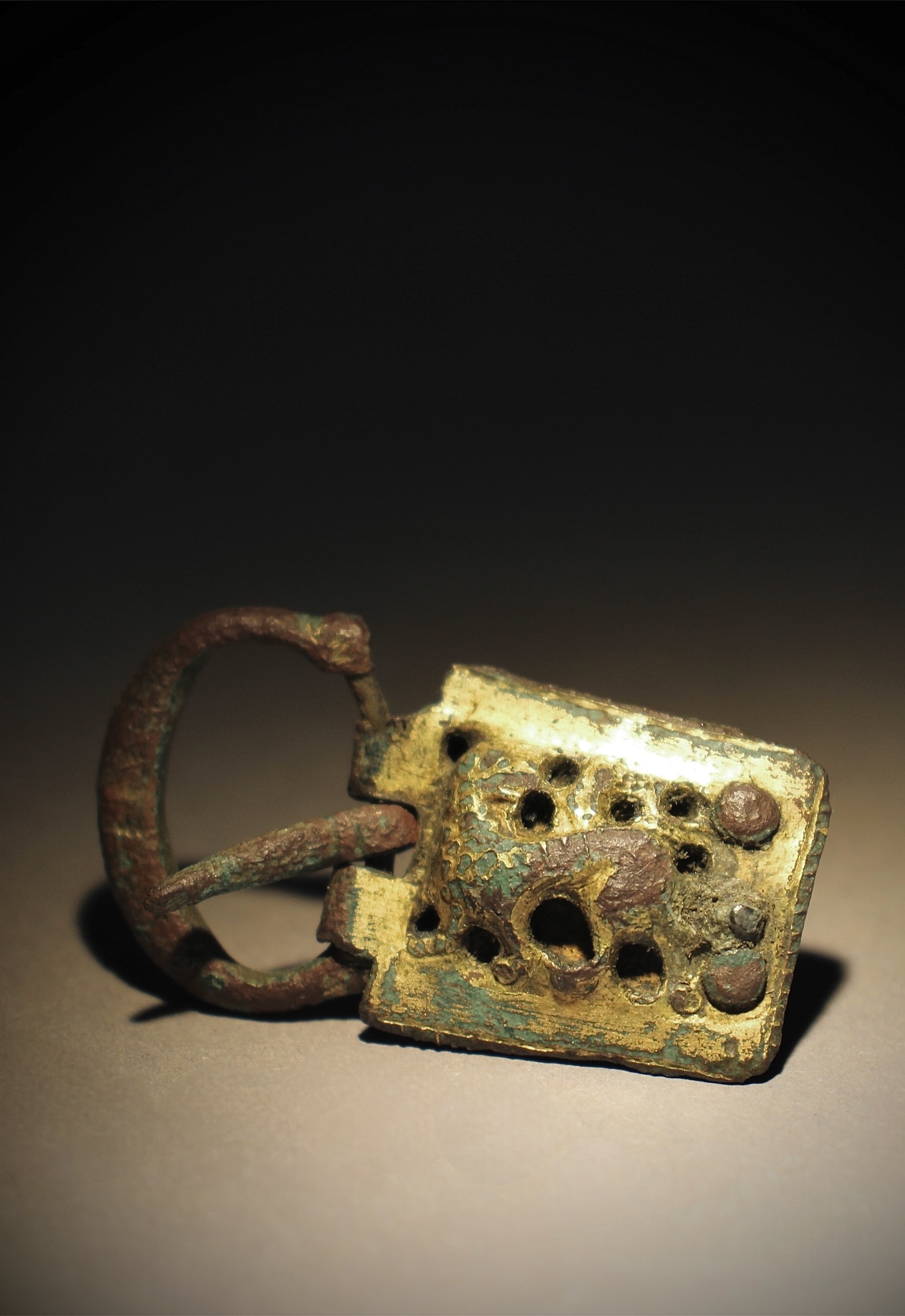 13th century Romanesque gilded buckle plate