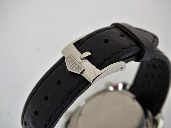 steel case with leather rally strap and Heuer buckle