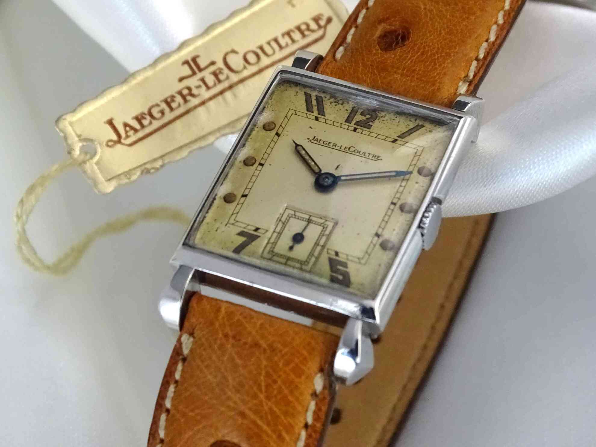 stainless steel case with original Jaeger leCoultre ostrich strap