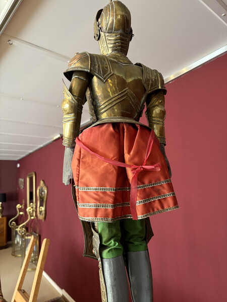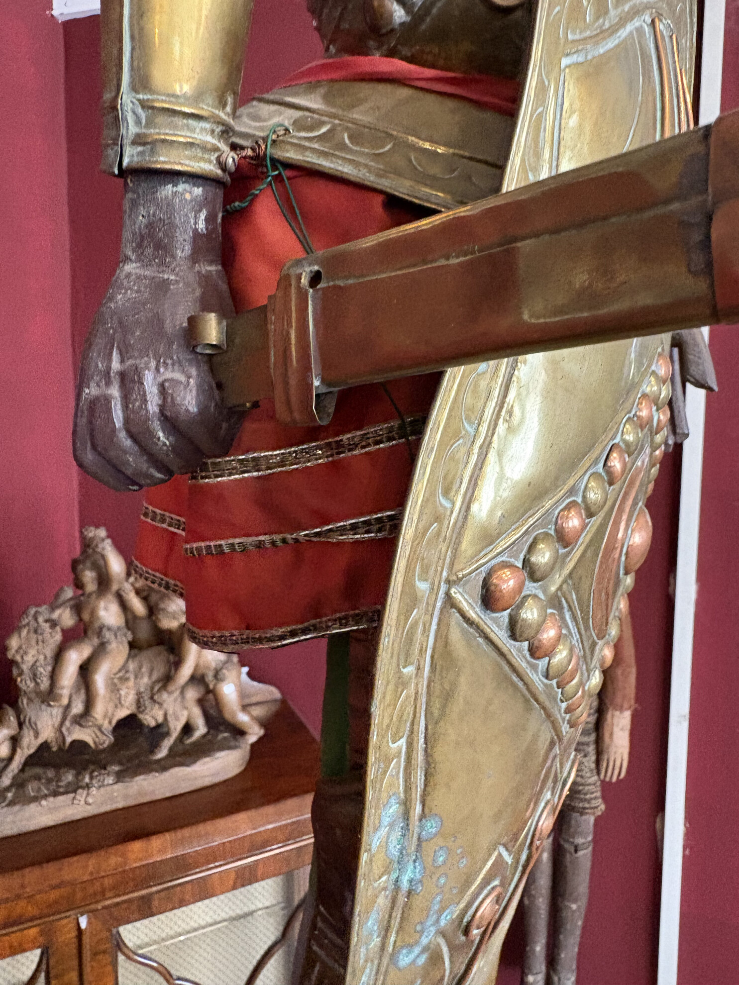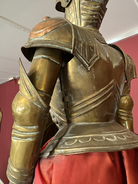 Brass armor and shield with repoussé decoration