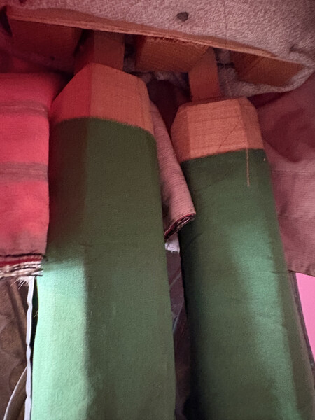 Cloth garments (red skirt, green trousers)
