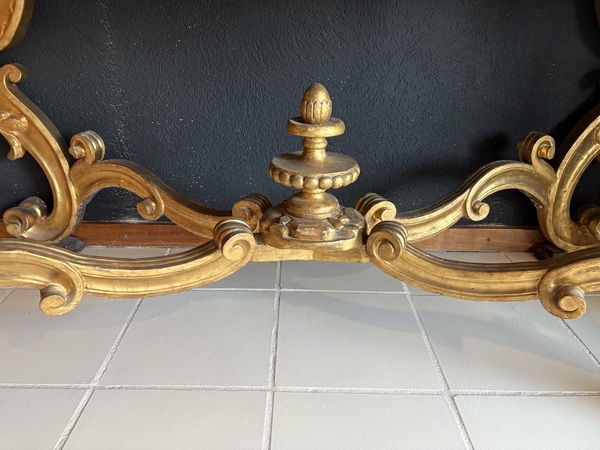 Giltwood frame with elaborate hand-carved detailing.