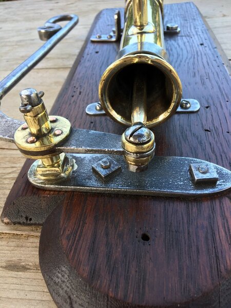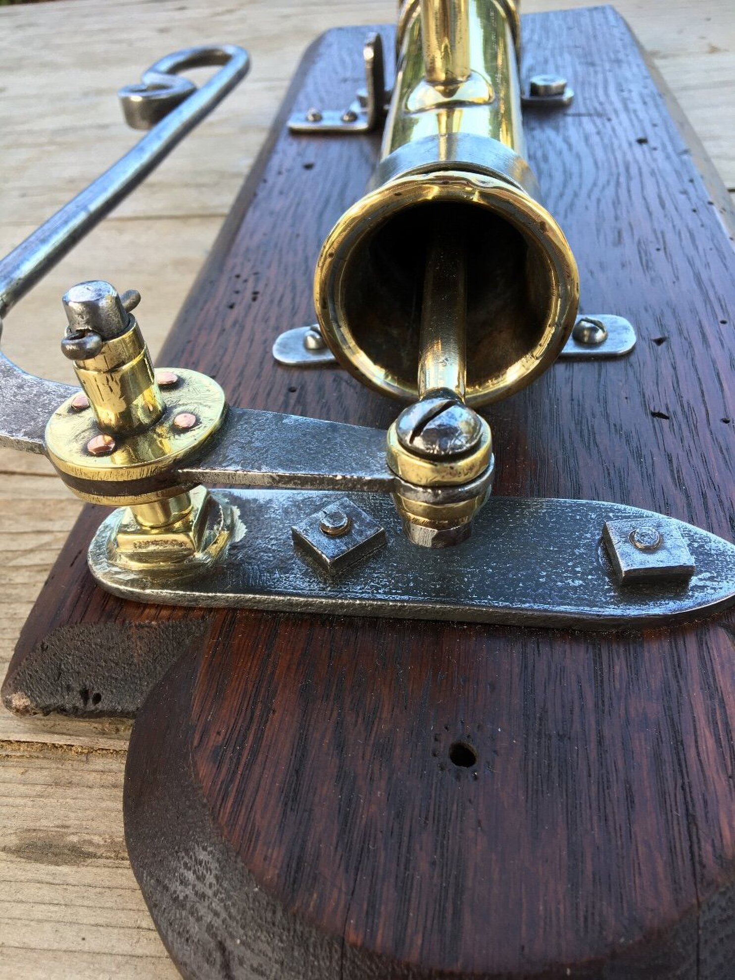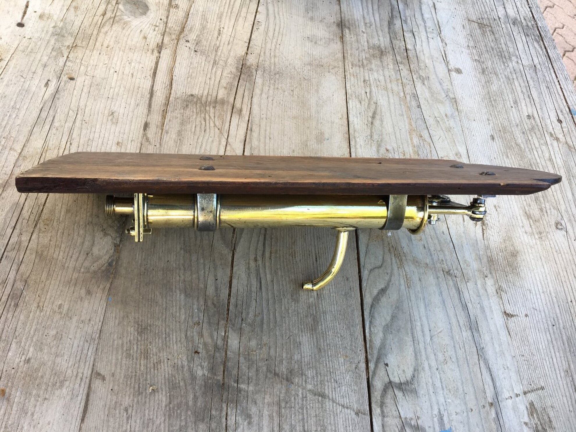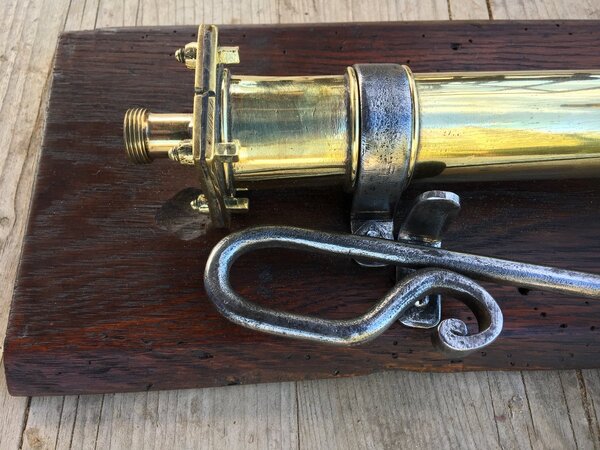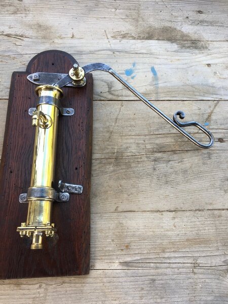 Very decorative object, made of brass, iron and wood, everything is handmade.