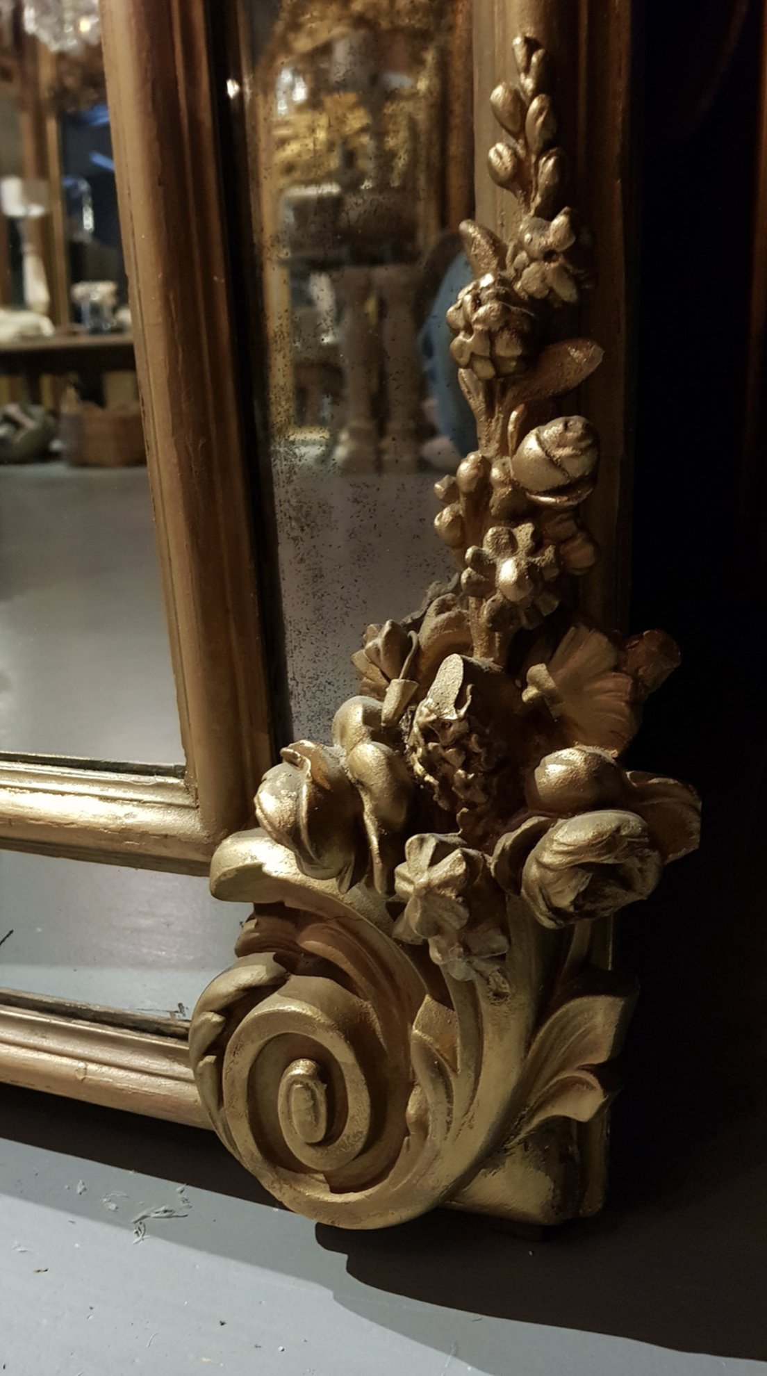 Very distinctive, tall antique château mirror.