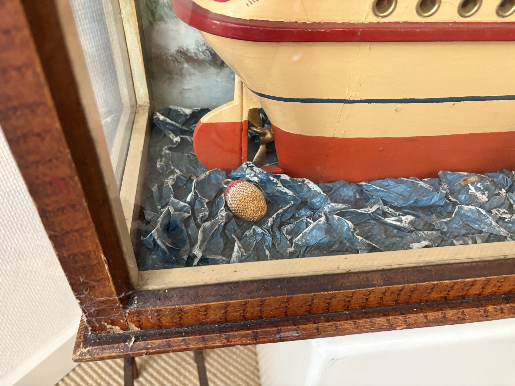Vintage diorama featuring a handcrafted model ship