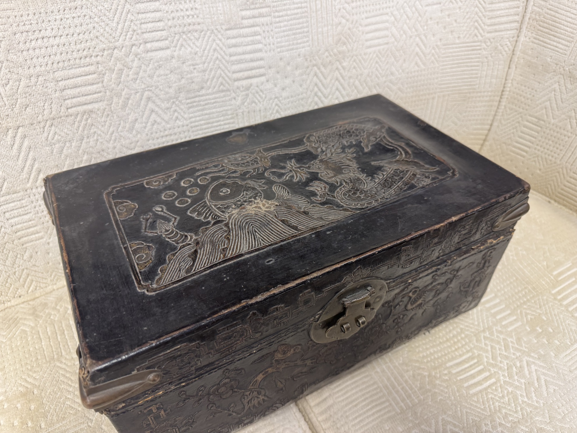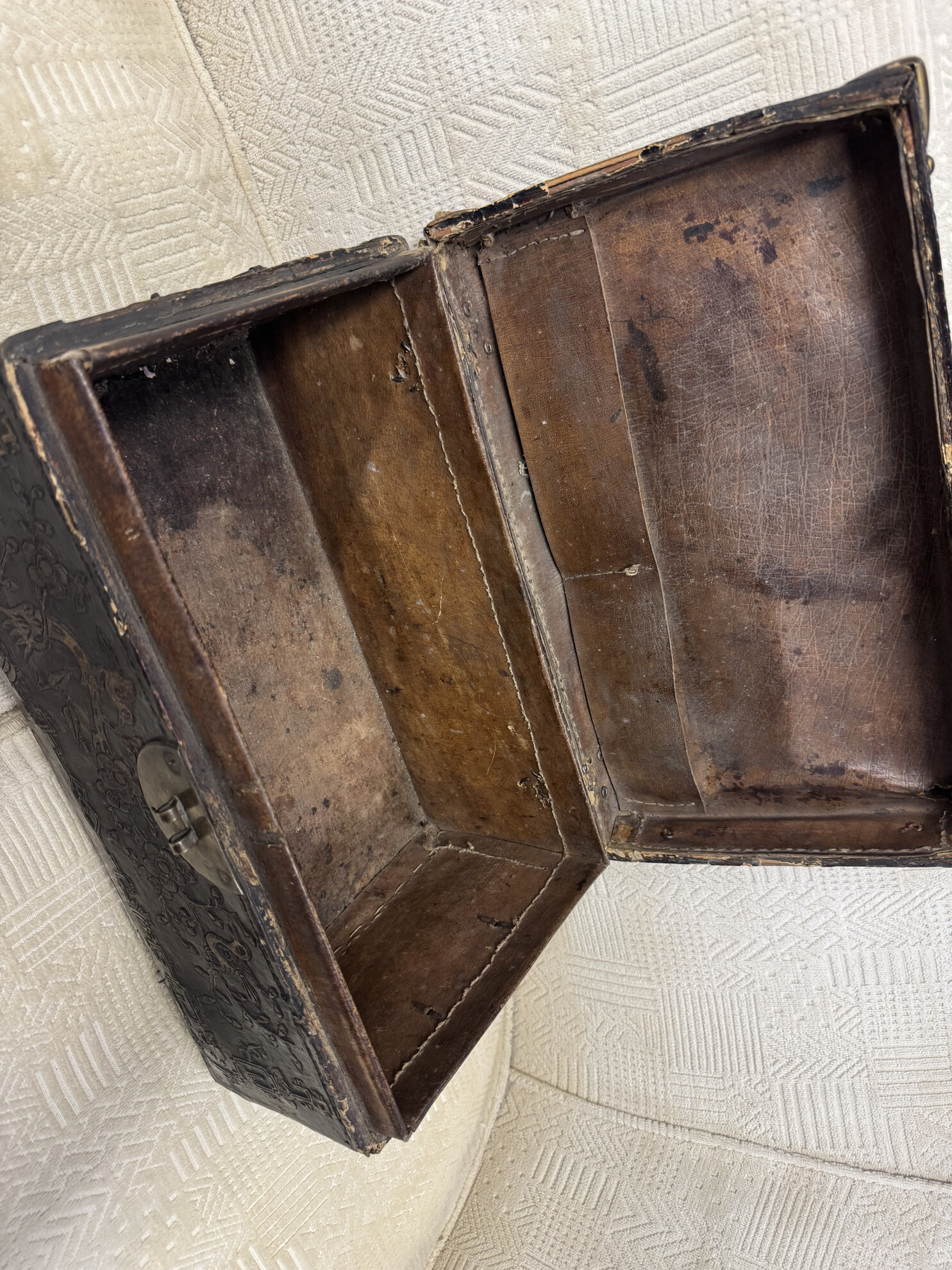 Antique Leather Box with Chinese Industrial Provenance Antique Leather Box with Chinese Industrial Provenance